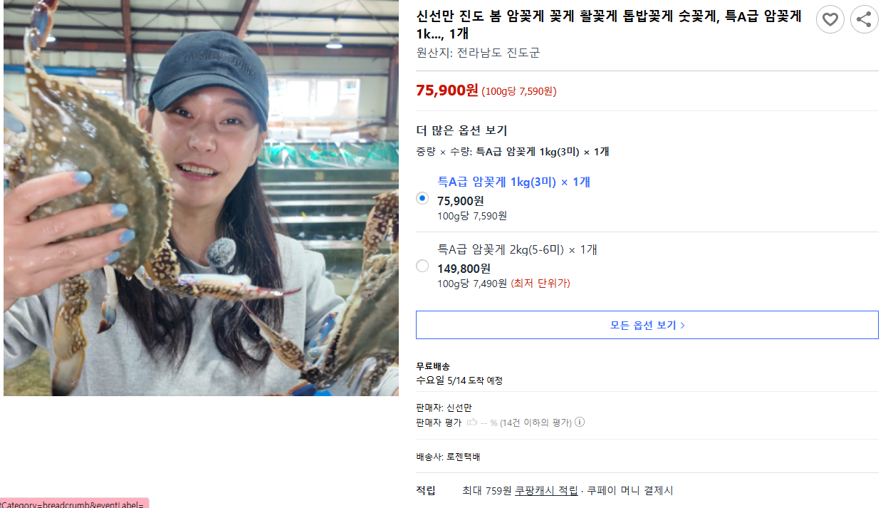 - 냉동이 아닌 ‘활꽃게’ 옵션 선택 시 배송 일정 확인 필수