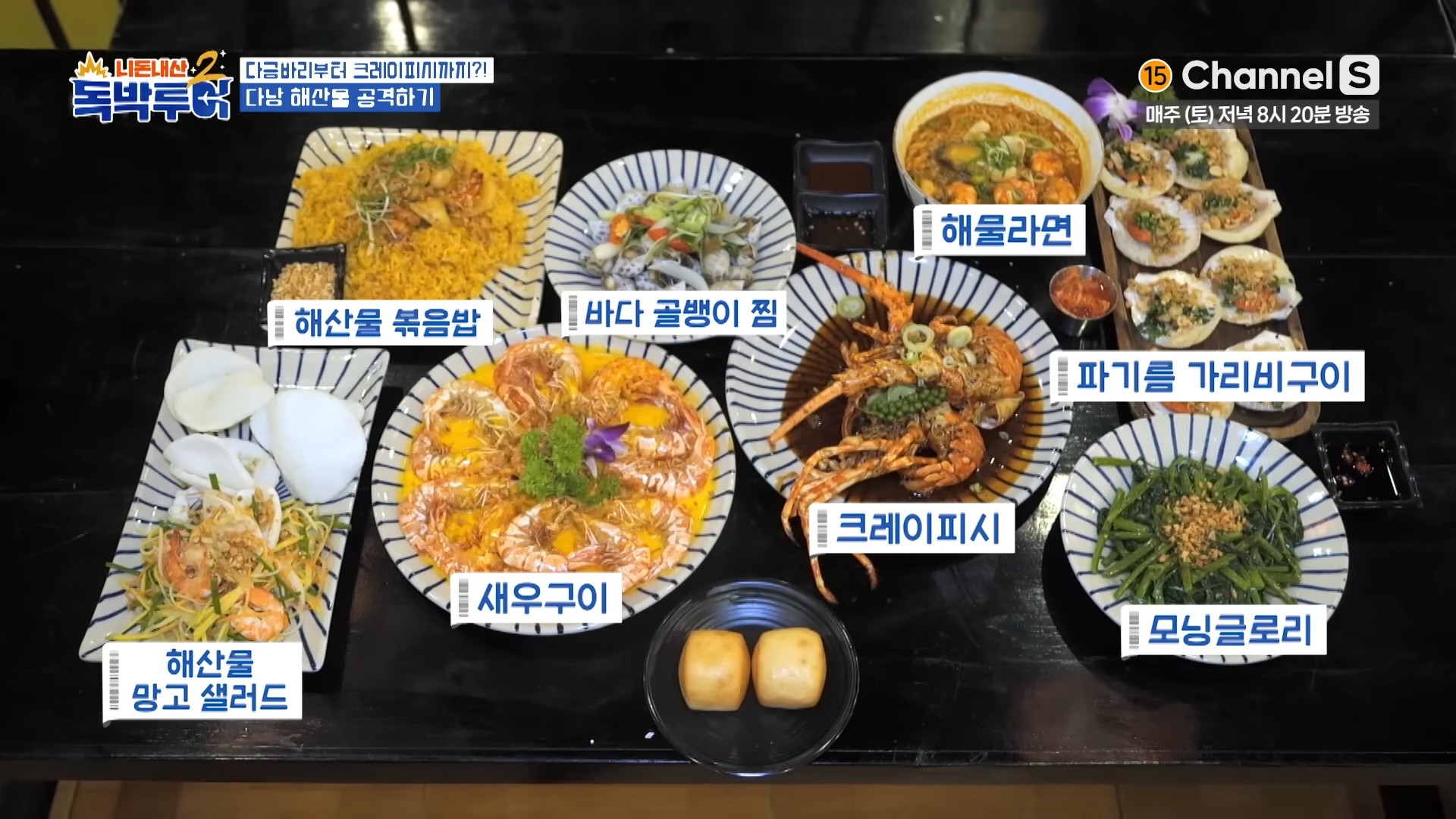 독박투어 멤버들이 강력 추천하는 이 맛집은 생새우와 조개구이로 유명합니다.