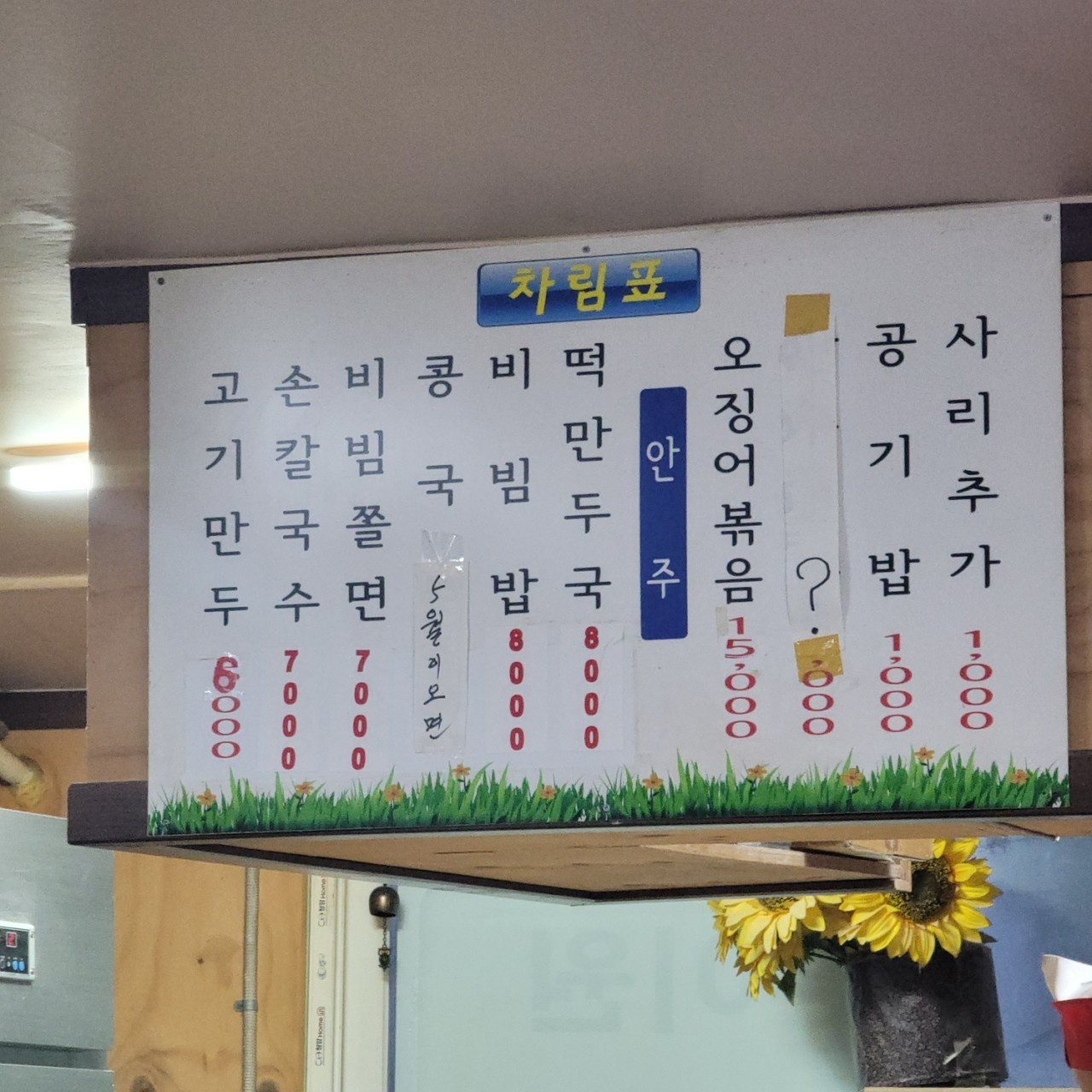 | 오징어볶음 | 15,000원 | 국수와 곁들이기 좋은 매콤한 별미 |