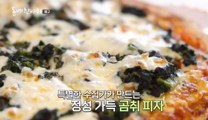 A. 향긋한 곰취가 토핑된 피자로, 일반 피자보다 더 담백하고 상쾌한 맛을 느낄 수 있어요.