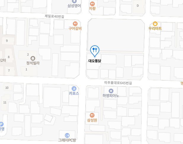 인천을 대표하는 3대 닭강정 중 하나로 알려진 이곳은, *미추홀구 주안동에 위치한 **대오통닭입니다.