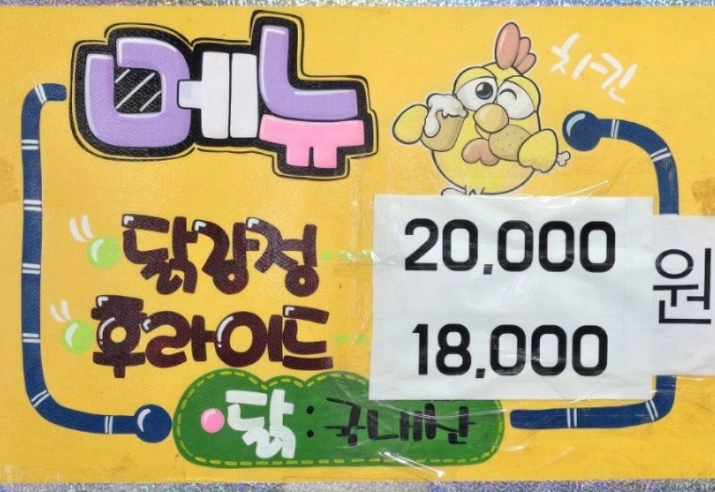 A1. 닭강정 20,000원, 후라이드 18,000원, 반반은 18,000원입니다.