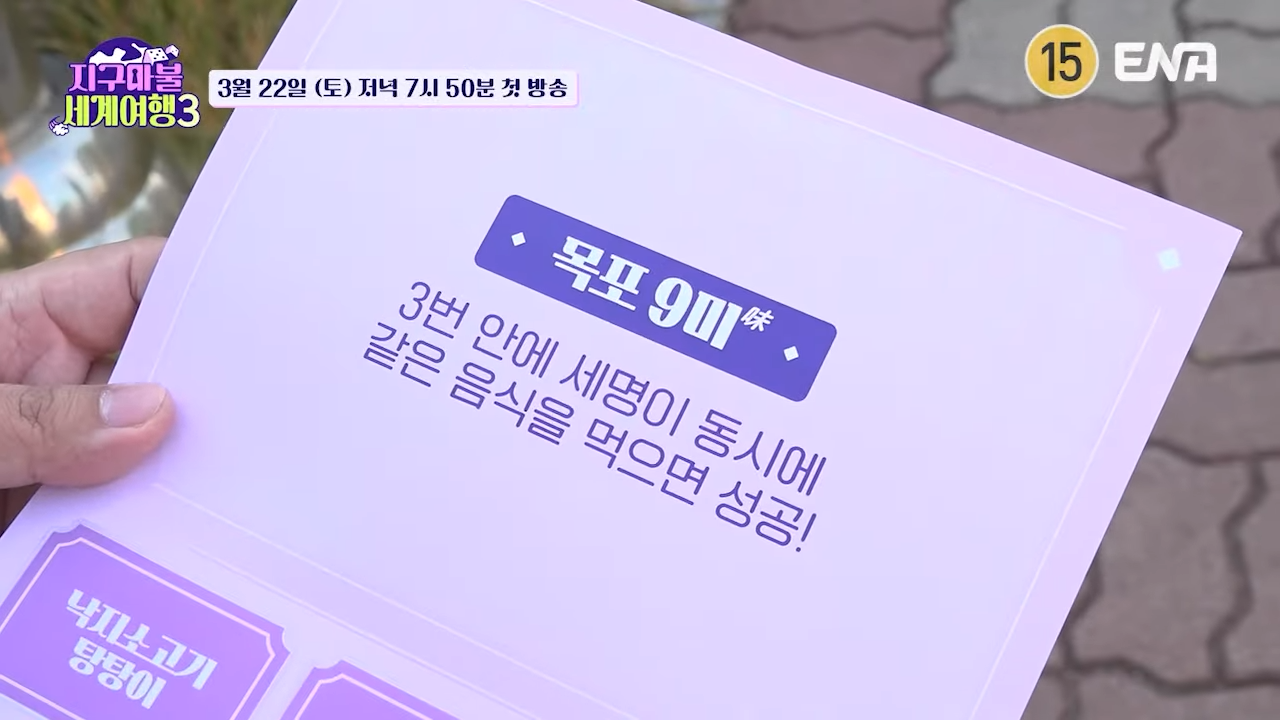 세 사람은 목포 9미 중 하나를 고른 후, 각자 동일한 맛집에서 만나야만 성공하는 미션을 수행해야 했죠.