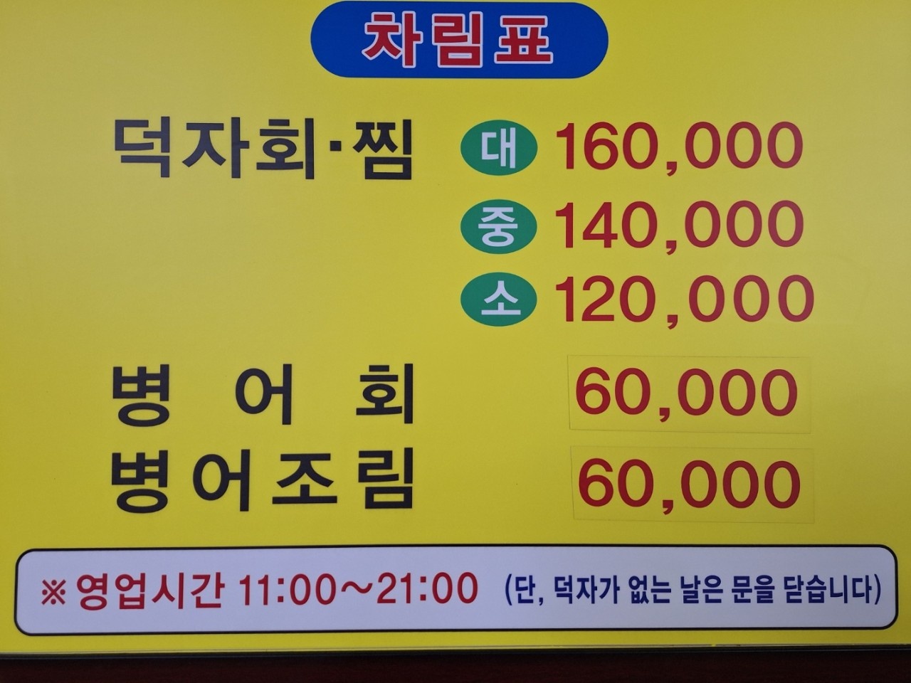 | 덕자회 + 찜 세트 (중) | 140,000원 |