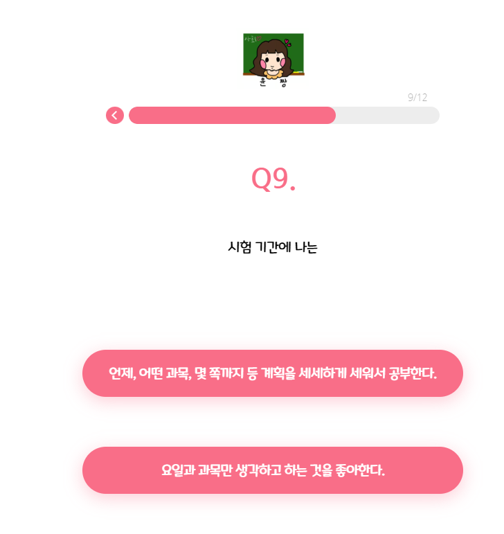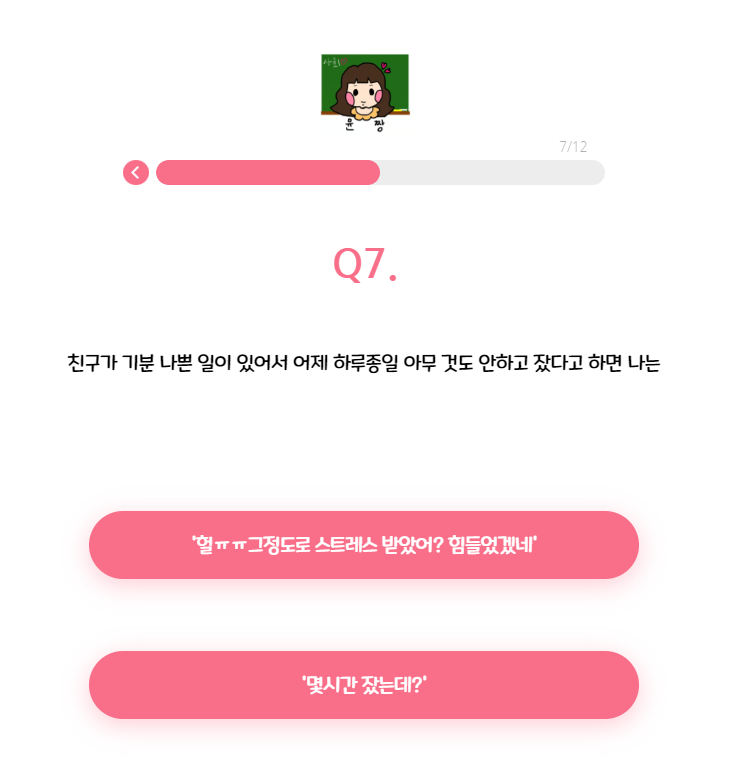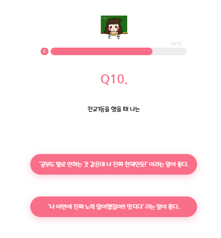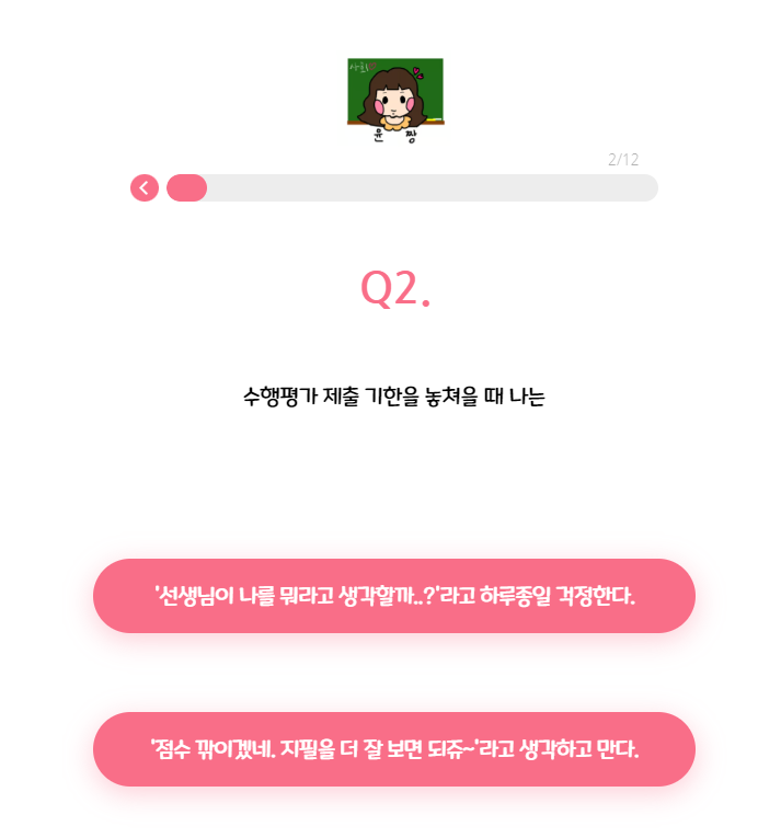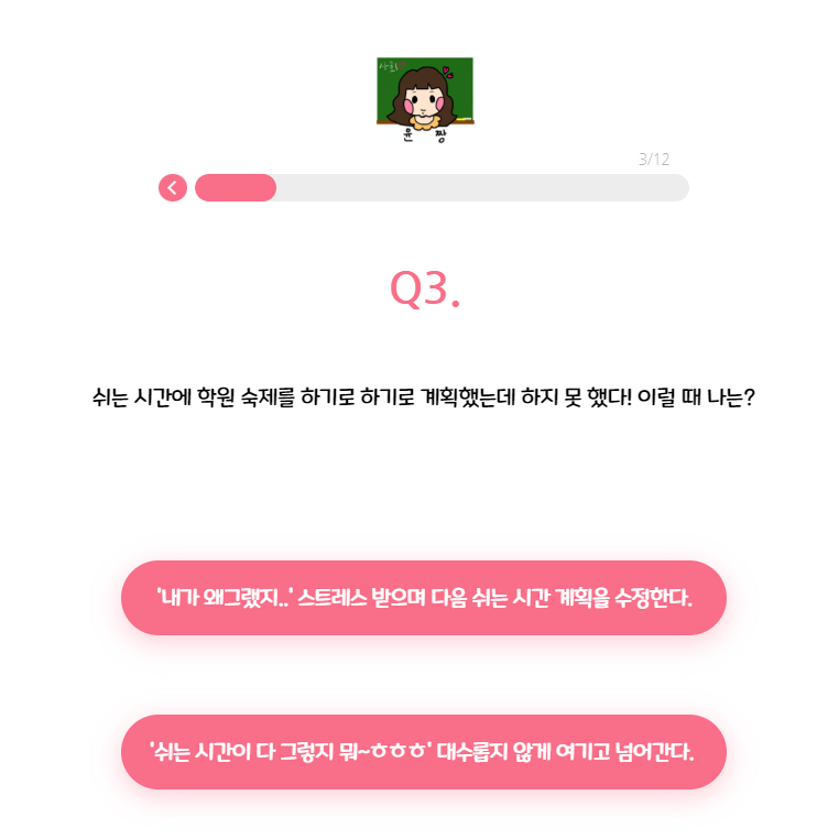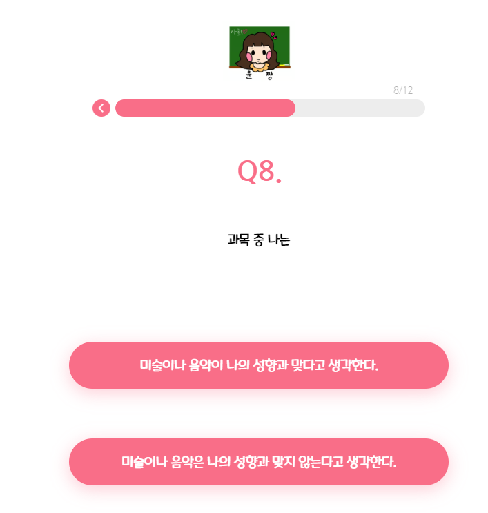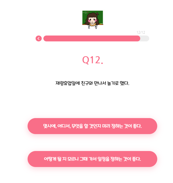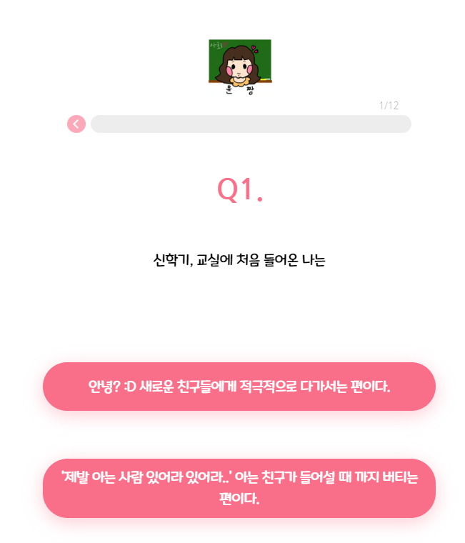 총 12가지 질문으로 당신에게 맞는 티니핑 유형을 찾아줍니다.