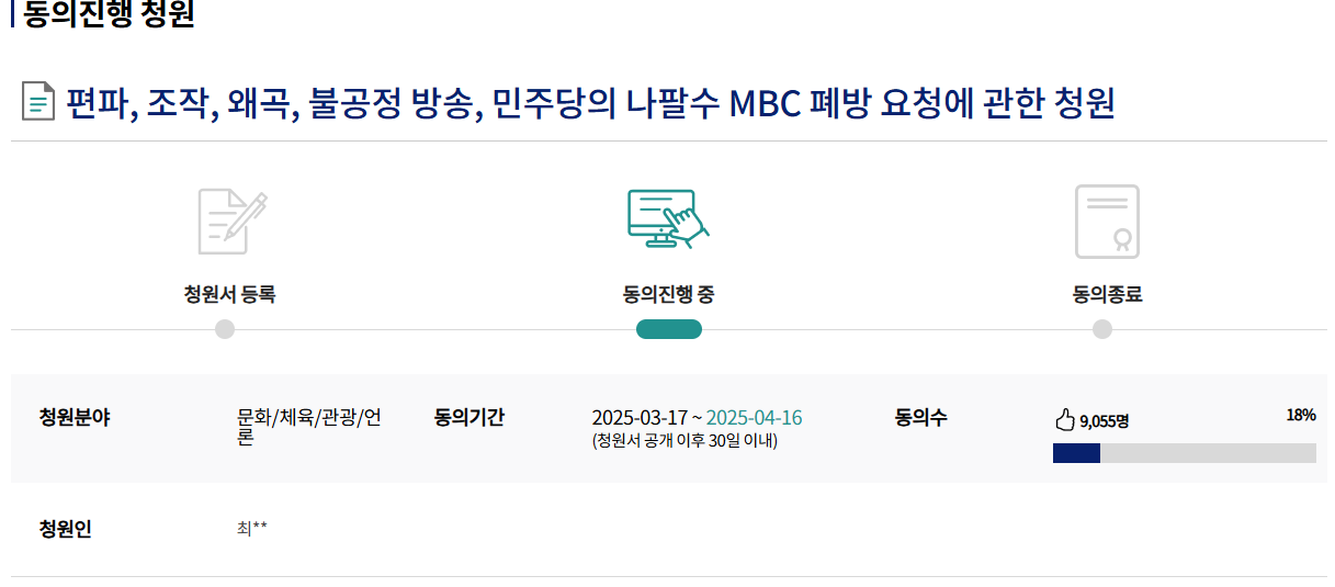 - 현재 동의자 수: 8,997명 (목표 50,000명)